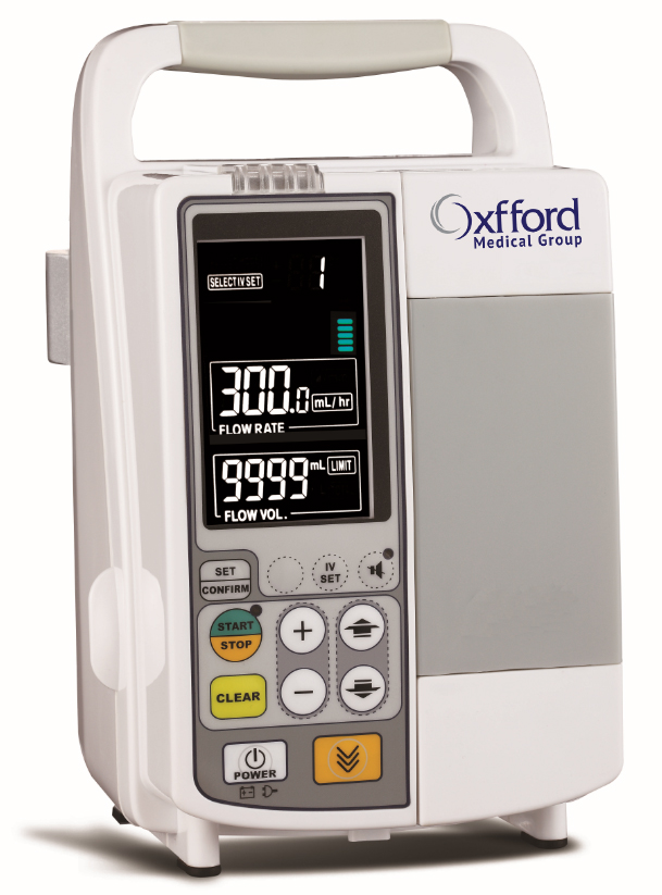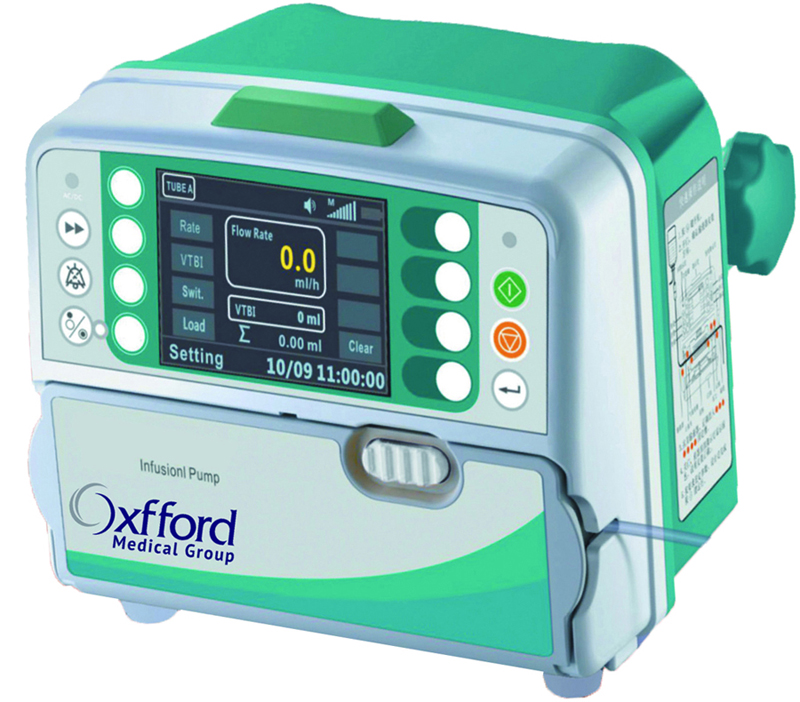 - Audio and visual alarms: Air-in-line, Door open, Occlusion, Infusion finished, No operation, Battery low, Pump error, Motor reverse, Pressure abnormity, Sound abnormity, AC power lost.